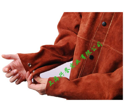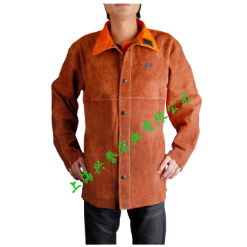 前幅和衣袖采用咖啡色牛二層皮,后幅采用橙紅色防護(hù)阻燃布,專為焊工在炎熱環(huán)境下工作而設(shè)計(jì)。