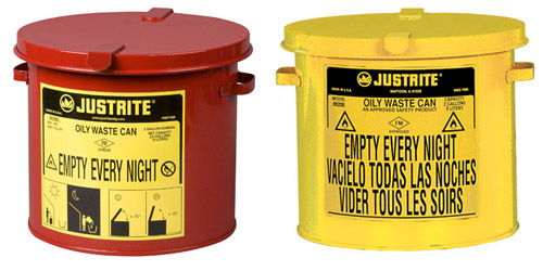 符合美國(guó) OSHA 要求的油漬廢品罐是在使用浸有溶劑的布和抹布時(shí)的必備品。浸有溶劑、稀釋劑、亞麻籽油、可燃粘合劑和其他易燃液體的抹布和布如果隨意拋棄,將有極大的火災(zāi)隱患。經(jīng)過(guò)專(zhuān)門(mén)設(shè)計(jì)的蓋子打開(kāi)的角度不超過(guò) 60 度,不使用時(shí)將保持關(guān)閉,將內(nèi)容物與火源隔離,限制氧氣量,因此可有效地消除自燃隱患。圓形的構(gòu)造和加高的罐底可促進(jìn)罐體周?chē)目諝饬魍?,從而達(dá)到散熱以及減少因水分聚集而生銹的目的。耐用的鋼制構(gòu)造采用耐化學(xué)腐蝕的粉末涂料涂飾。