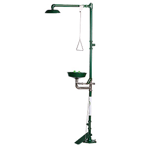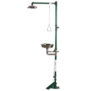 復(fù)合式淋浴洗眼器WG7052F配備ABS塑料水盆和帶防塵蓋的雙不銹鋼噴淋嘴。淋浴為大水流雨瀑淋浴頭,配備鍍鋅鋼支柱和拉桿。