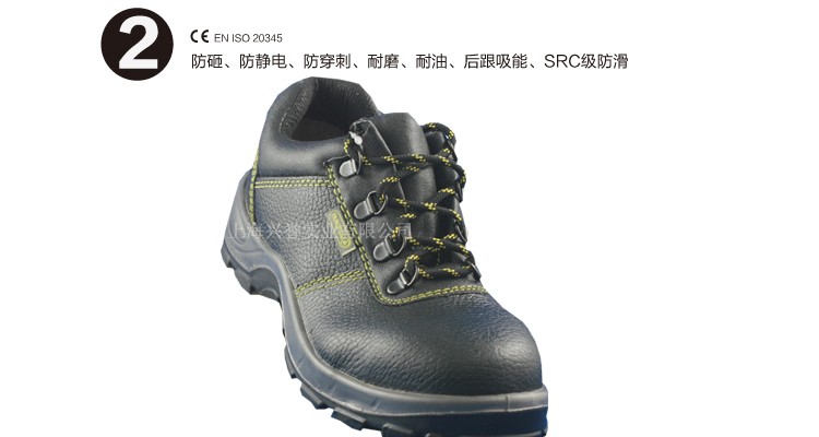 安全鞋,牛皮鞋面(印度進(jìn)口水牛皮)。皮革厚度1.8-2.0毫米。新型高品質(zhì)雙密度聚氨酯(PU)注塑鞋底,帶鋼包頭和防穿刺中底。SRC級防滑,性能優(yōu)異,輕便舒適。防砸、防穿刺、防靜電、耐磨、耐油。