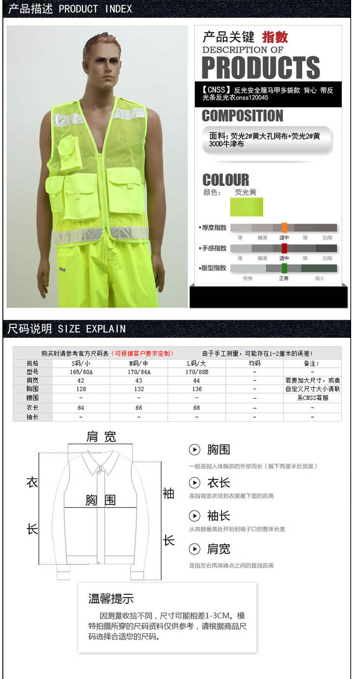 產(chǎn)品名稱:反光安全服馬甲多袋款/反光背心/反光警示服