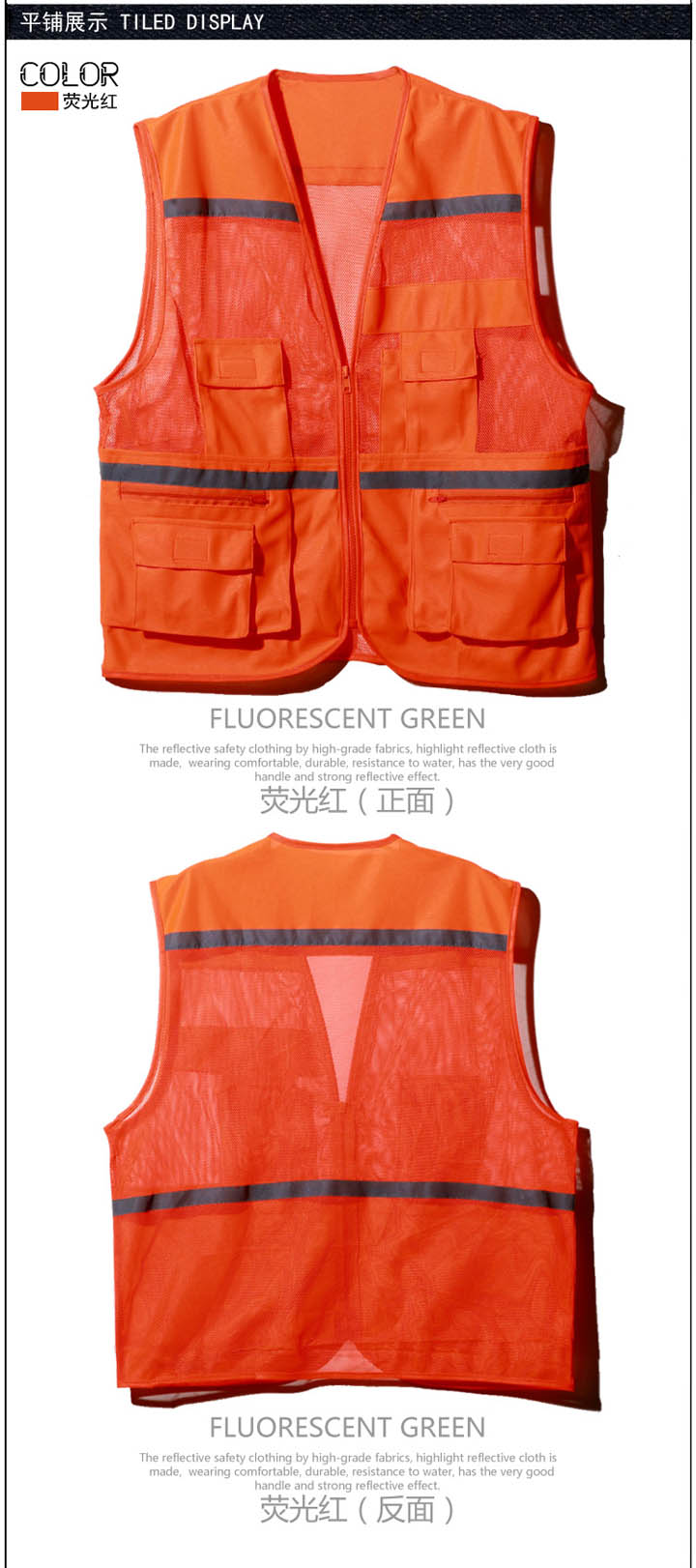 4.結(jié)構(gòu)簡(jiǎn)單,穿著方便,高亮度。適用于清掃環(huán)衛(wèi)、加油站及停車場(chǎng)等場(chǎng)合的工作人員。