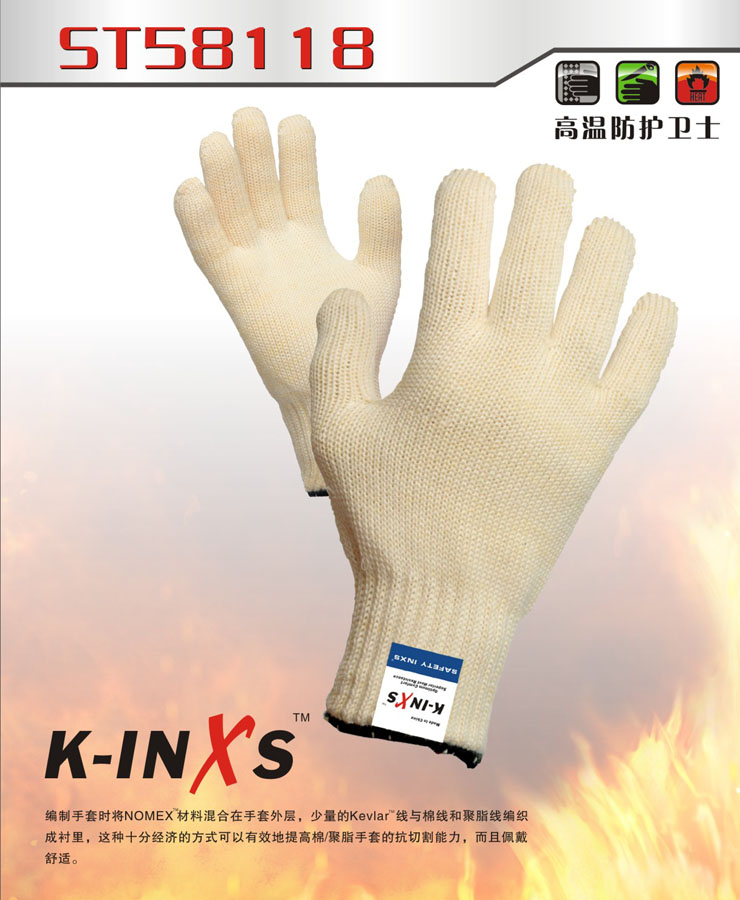 強(qiáng)度高。手套外層用這兩種材料混織,并用吸汗的棉做內(nèi)層,達(dá)到很好的隔熱、