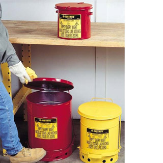 符合美國OSHA 要求的油漬廢品罐是在使用浸有溶劑的布和抹布時(shí)的必備品。浸有溶劑、稀釋劑、亞麻籽油、可燃粘合劑和其他易燃液體的抹布和布如果隨意拋棄,將有極大的火災(zāi)隱患。經(jīng)過專門設(shè)計(jì)的蓋子打開的角度不超過60度,不使用時(shí)將保持關(guān)閉,將內(nèi)容物與火源隔離,限制氧氣量,因此可有效地消除自燃隱患。圓形的構(gòu)造和加高的罐底可促進(jìn)罐體周圍的空氣流通,從而達(dá)到散熱以及減少因水分聚集而生銹的目的。耐用的鋼制構(gòu)造采用耐化學(xué)腐蝕的粉末涂料涂飾。