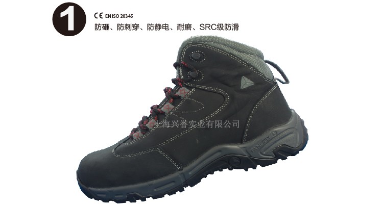 高幫非金屬安全鞋。牛皮鞋面,聚酰胺襯里,可脫卸聚酰胺&EVA泡沫中底,橡膠大底。合成材料防砸包頭和防刺穿中底,防砸、防刺穿、防靜電、耐磨,SRC級(jí)防滑。HRO耐高溫250度