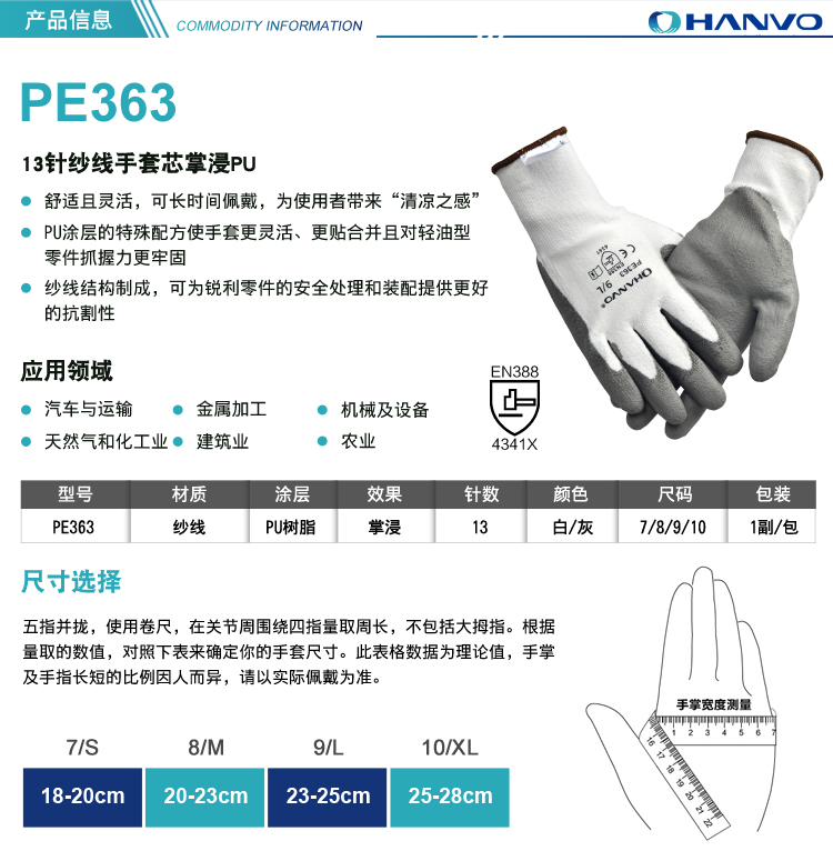 產(chǎn)品名稱:恒輝PE363 PU樹脂涂層防切割手套