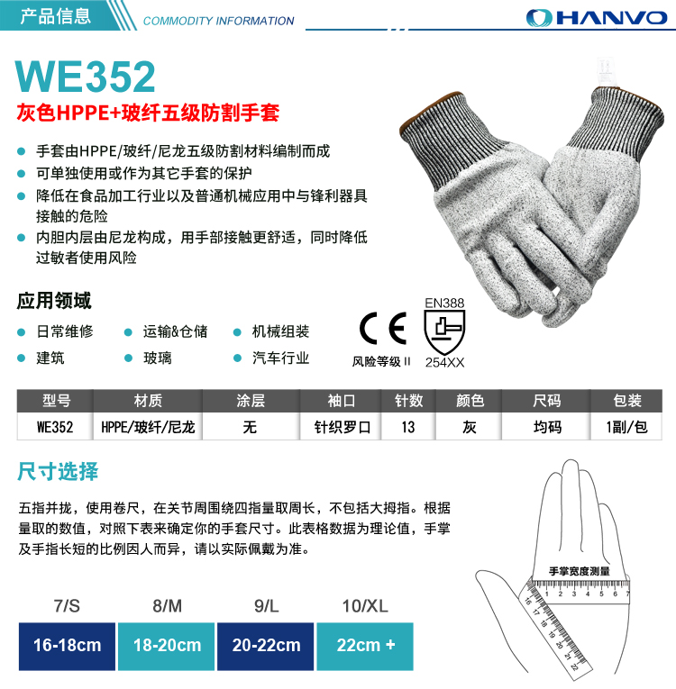 產品名稱:恒輝WE352 防切割手套(五級防護)