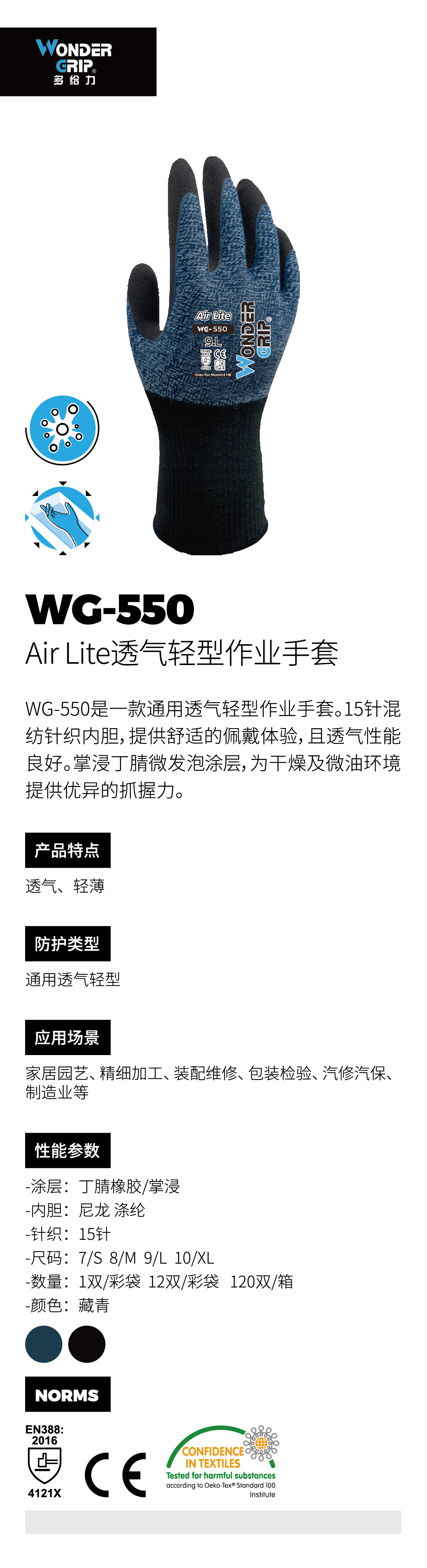 產(chǎn)品名稱:多給力 WG-550 丁腈發(fā)泡涂層防護手套 產(chǎn)品描述: 透氣纖維材質,提高柔軟度和舒適度; 丁腈發(fā)泡技術,提供良好透氣性; 掌部抓握力優(yōu)異; 推薦行業(yè): 工具及設備操作,包裝及檢驗,機械裝配及維修,建筑業(yè),運輸倉儲;