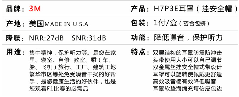 產(chǎn)品名稱:3M PELTOR H7P3E 掛安全帽式耳罩(SNR30dB)