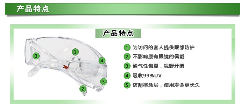 產(chǎn)品名稱:3M 1611HC 訪客用防護(hù)眼鏡(防刮擦涂層100副裝)