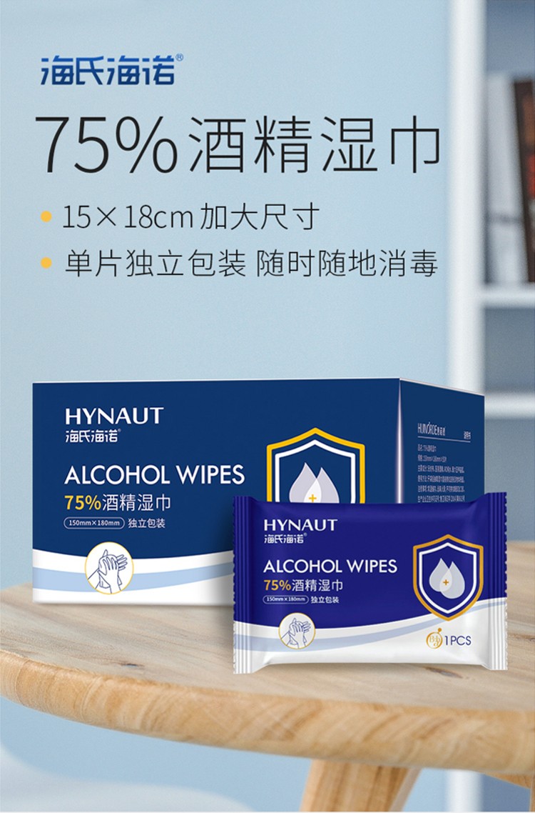 產(chǎn)品名稱:海氏海諾 75%酒精濕巾單片獨(dú)立包裝(50片/盒)