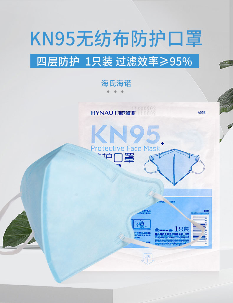 產(chǎn)品名稱:海氏海諾 A058 KN95 防護(hù)口罩耳戴式四層獨(dú)立包裝
