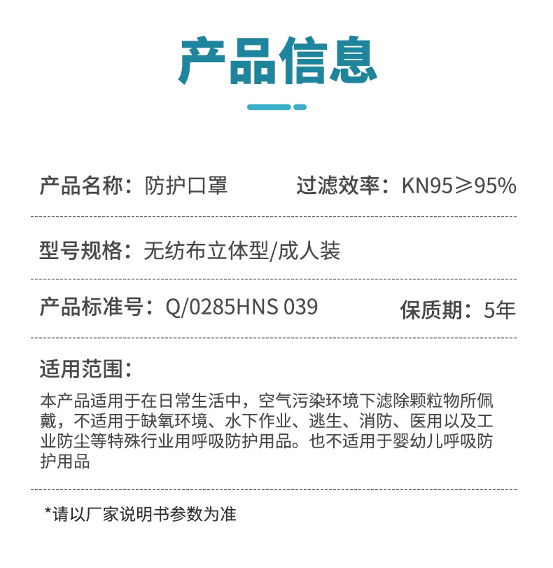 產(chǎn)品名稱:海氏海諾 A066 KN95 防護口罩耳戴式四層