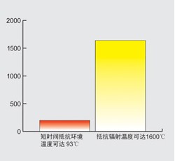 以上圖示為Lakeland工業(yè)隔熱服針對輻射熱和環(huán)境熱防護性能的相對比較。所顯示溫度值為試驗室數(shù)據(jù)的推測數(shù)值,并不能用于代表此防護服裝實際使用于這些溫度環(huán)境中。使用者的具體身體狀況,工作環(huán)境,以及實際工作性質(zhì)都會對防護溫度及暴露時間產(chǎn)生不確定性。