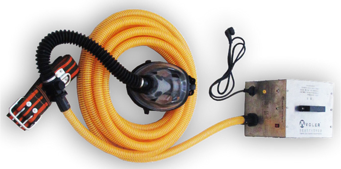 產(chǎn)品組成:主要由面罩或頭罩,PVC長管(標(biāo)配20M可加長),腰帶調(diào)節(jié)閥,主機組成,本產(chǎn)品使用AC 220V的電源。