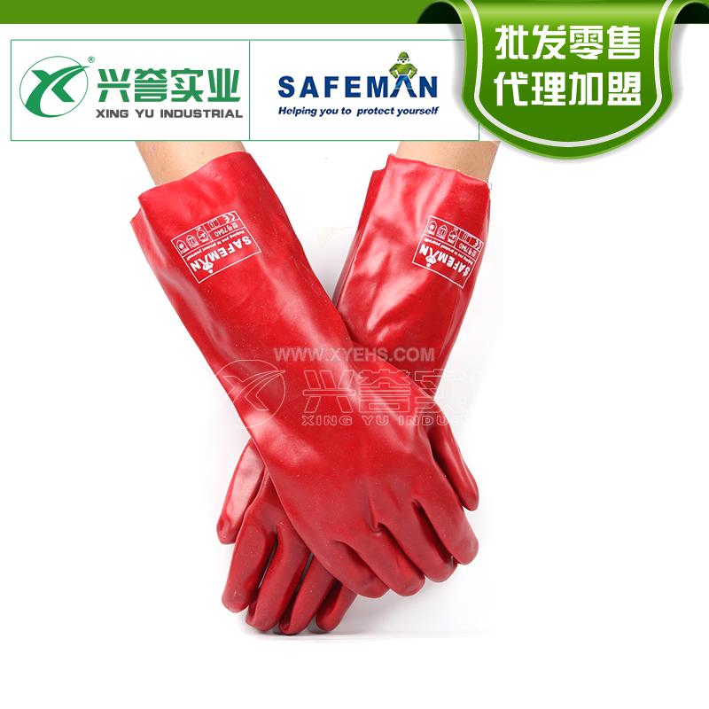 SAFEMAN君御 7134A紅色PVC全浸棉襯手套