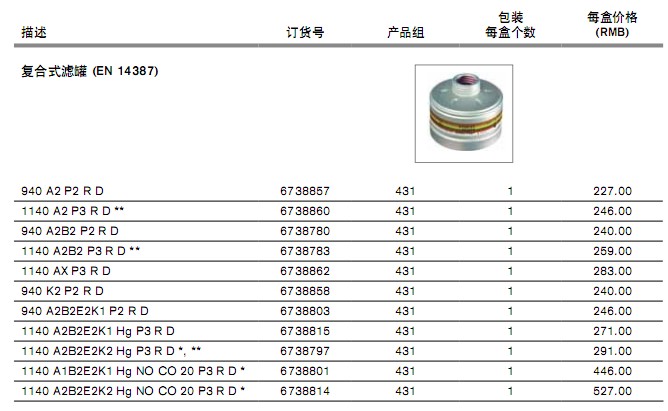 所有過濾罐均有 CE 標(biāo)記,符合 EN 14387 及/或 EN 143:2000 標(biāo)準(zhǔn)。