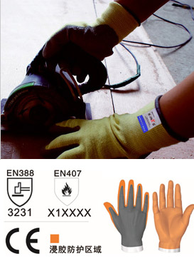 防切割耐磨損、觸感和靈巧性優(yōu)化,13針芳綸針織內膽,手掌浸灰色PU