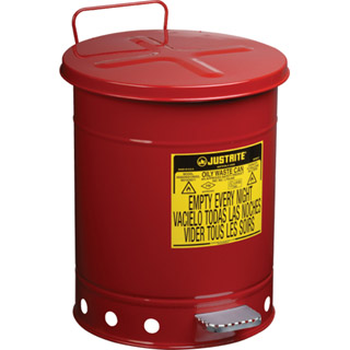 符合美國OSHA 要求的油漬廢品罐是在使用浸有溶劑的布和抹布時(shí)的必備品。浸有溶劑、稀釋劑、亞麻籽油、可燃粘合劑和其他易燃液體的抹布和布如果隨意拋棄,將有極大的火災(zāi)隱患。經(jīng)過專門設(shè)計(jì)的蓋子打開的角度不超過60度,不使用時(shí)將保持關(guān)閉,將內(nèi)容物與火源隔離,限制氧氣量,因此可有效地消除自燃隱患。圓形的構(gòu)造和加高的罐底可促進(jìn)罐體周圍的空氣流通,從而達(dá)到散熱以及減少因水分聚集而生銹的目的。耐用的鋼制構(gòu)造采用耐化學(xué)腐蝕的粉末涂料涂飾。
