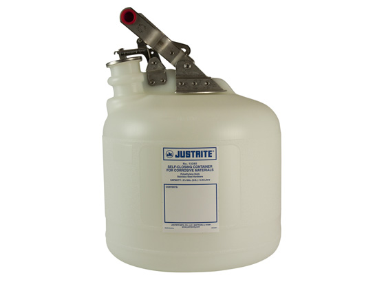 自動(dòng)關(guān)閉式腐蝕性廢物罐由半透明、高密度的聚乙烯制成,經(jīng)專門(mén)設(shè)計(jì),耐酸堿腐蝕。7.5升至19升尺寸的罐在手柄處設(shè)有固定裝置,使蓋子能夠保持敞開(kāi)。彈簧閉合帽提供嚴(yán)密的密封。罐口無(wú)消焰器,可快速傾倒非易燃腐蝕性液體。橢圓形的罐體上設(shè)有扳柄,可實(shí)現(xiàn)單手傾倒,并使罐的容量得到最大程度的利用。