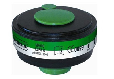 單一型濾罐,配合M8000/M9000系列全面罩使用。A2R:防氨氣、某些胺的衍生物,P3等級(jí)防塵。