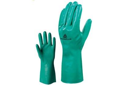 防化丁腈手套,無硅膠飾面,植棉襯里,外部氯化處理。直邊袖口,掌面與指間粗糙結(jié)構(gòu)易于抓握。耐磨損、耐油性能佳,