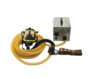 送風機吸入經(jīng)過濾的新鮮空氣后,經(jīng)風機壓縮后,以大于1300Pa的壓力依次送至長管、調(diào)節(jié)閥、硅膠波紋軟管進入面罩;通過調(diào)節(jié)閥的調(diào)節(jié),獲得適合作業(yè)者強度的供氣流量,供給作業(yè)人員呼吸;呼氣時,通過面罩的呼氣閥,將呼出的CO2排出。送風機置于空氣新鮮的地方,保證吸入的空氣符合人體要求。由于作業(yè)人員與環(huán)境隔離,從而保障了作業(yè)人員的安全。