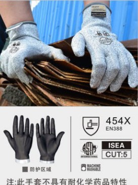 - 手套由新型的防切割材料BLADE X5纖維與萊卡混合針織而成