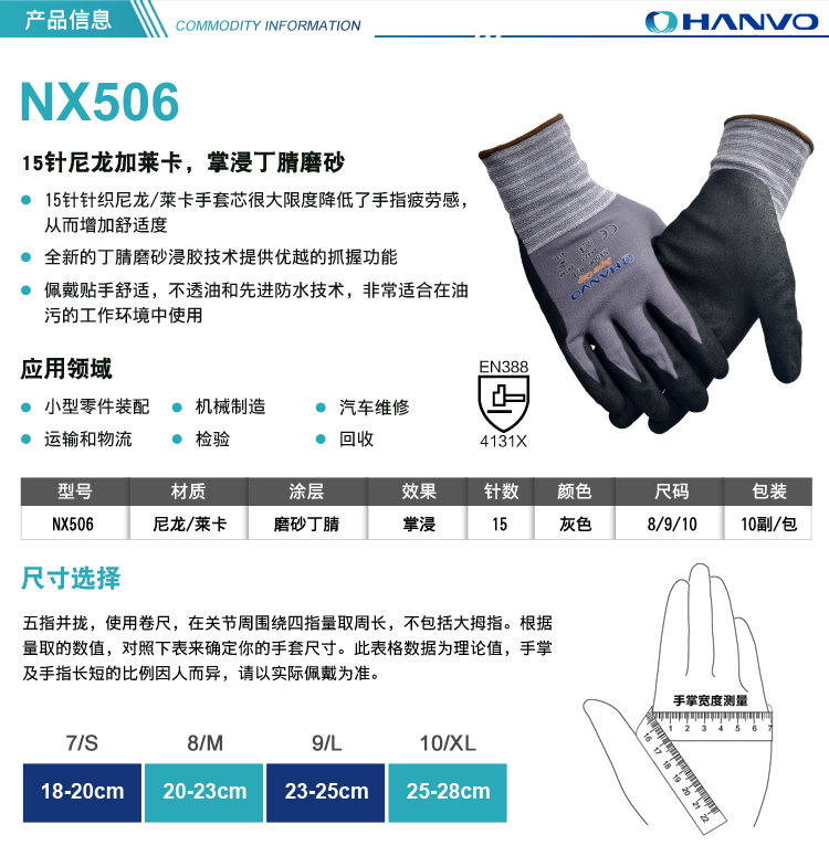 產(chǎn)品名稱(chēng):恒輝NX506 掌浸丁腈磨砂手套