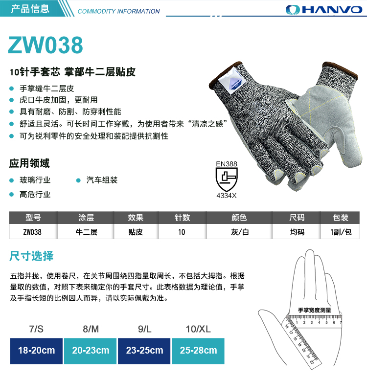 產(chǎn)品名稱:恒輝ZW038加皮3級(jí)防割手套