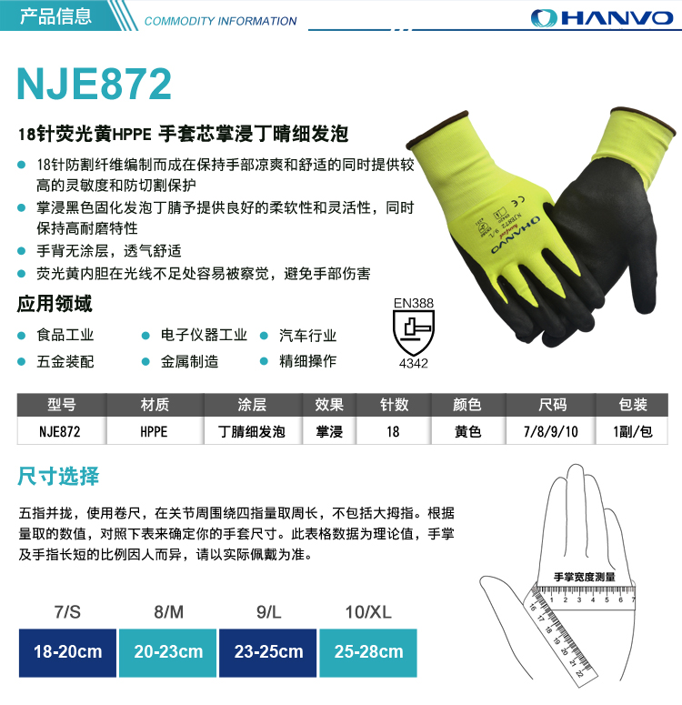 產(chǎn)品名稱:恒輝NJE872丁腈發(fā)泡3級防割手套