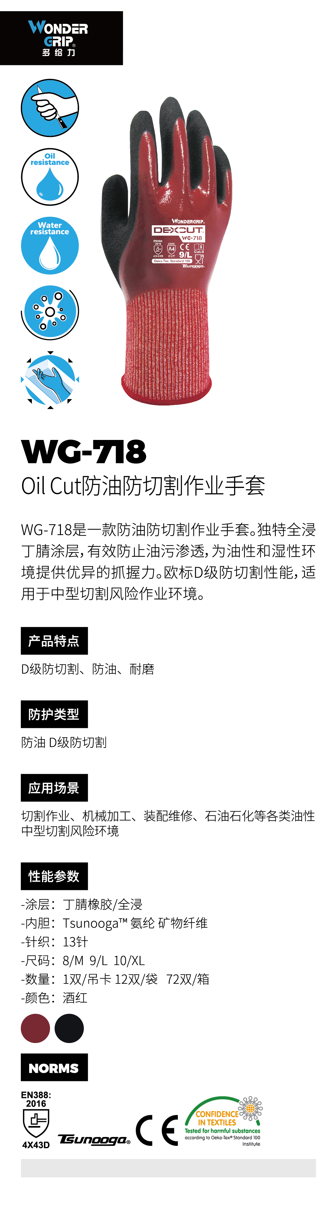 產(chǎn)品名稱:多給力 WG-718 防油5級(jí)防切割手套
