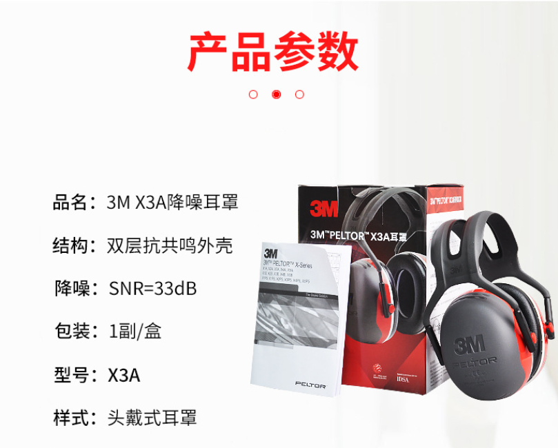 產(chǎn)品名稱:3M X3A頭戴式耳罩(SNR33dB)