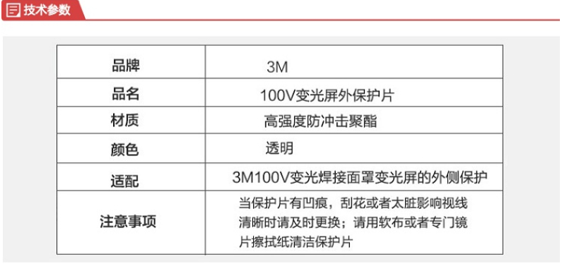 產(chǎn)品名稱:3M 變光屏外保護(hù)片100V(普通型)10片/包(零部件號(hào)776000)
