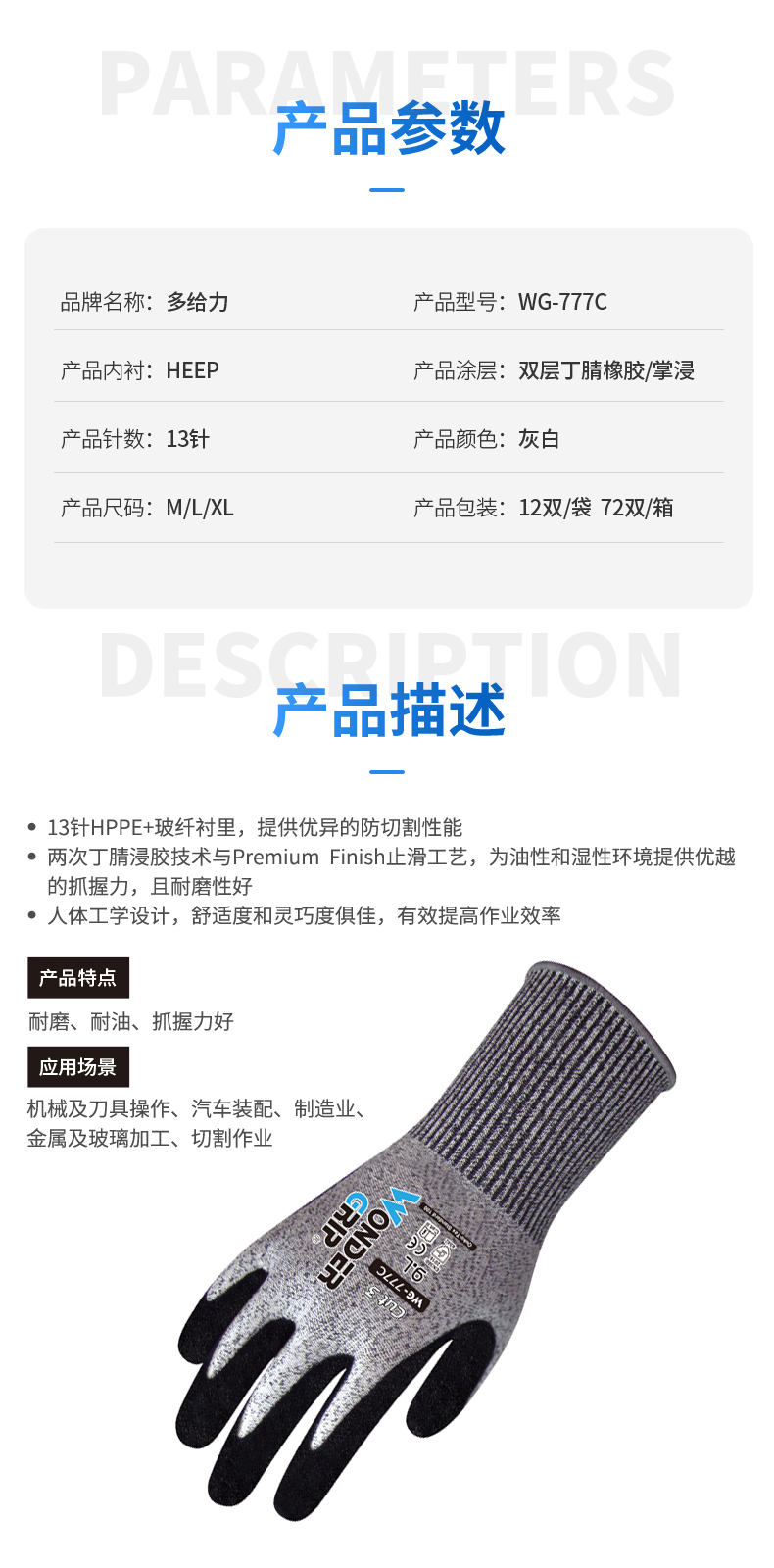 多給力WG-777C 防切割手套3級 訂貨號:WG-777C
