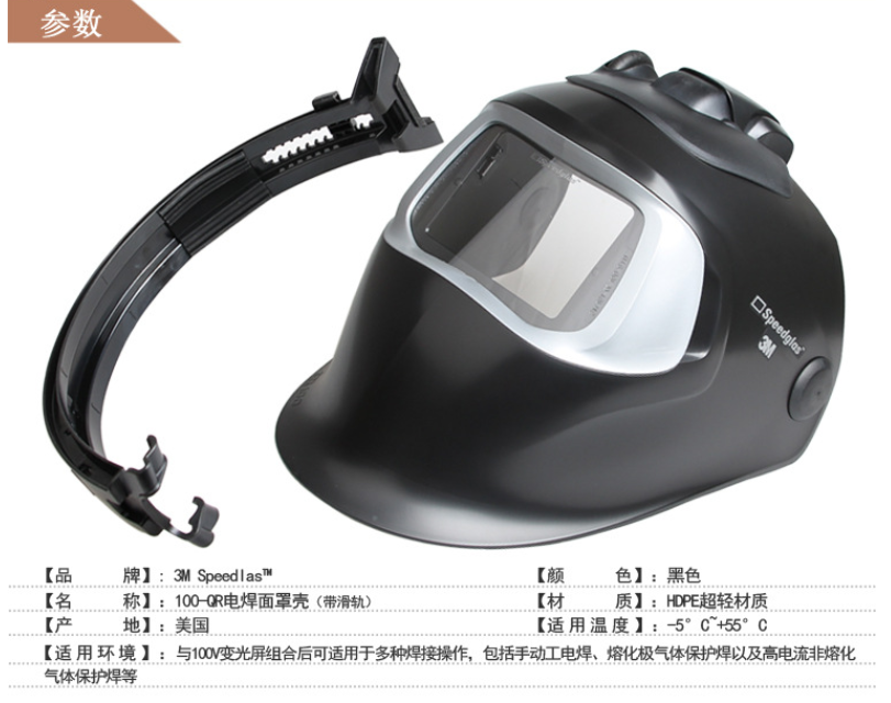 產(chǎn)品名稱:3M 100-QR自動(dòng)變光焊接面罩 (含滑軌 不含變光屏)(需搭配100V自動(dòng)變光屏使用)