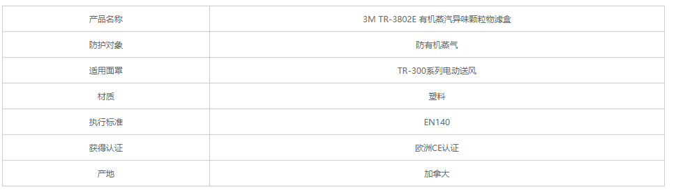 產(chǎn)品名稱:3M TR-3802E 有機蒸汽異味顆粒物濾盒