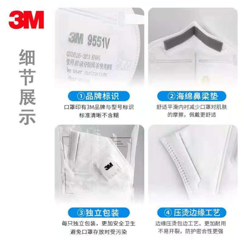 產(chǎn)品名稱:3M 9551V耳戴式自吸過濾式防顆粒物呼吸器 (單片裝)