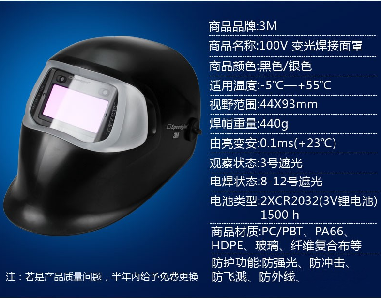 產(chǎn)品名稱:3M 501815 9100X自動變光焊接面罩(帶邊窗)1個/箱