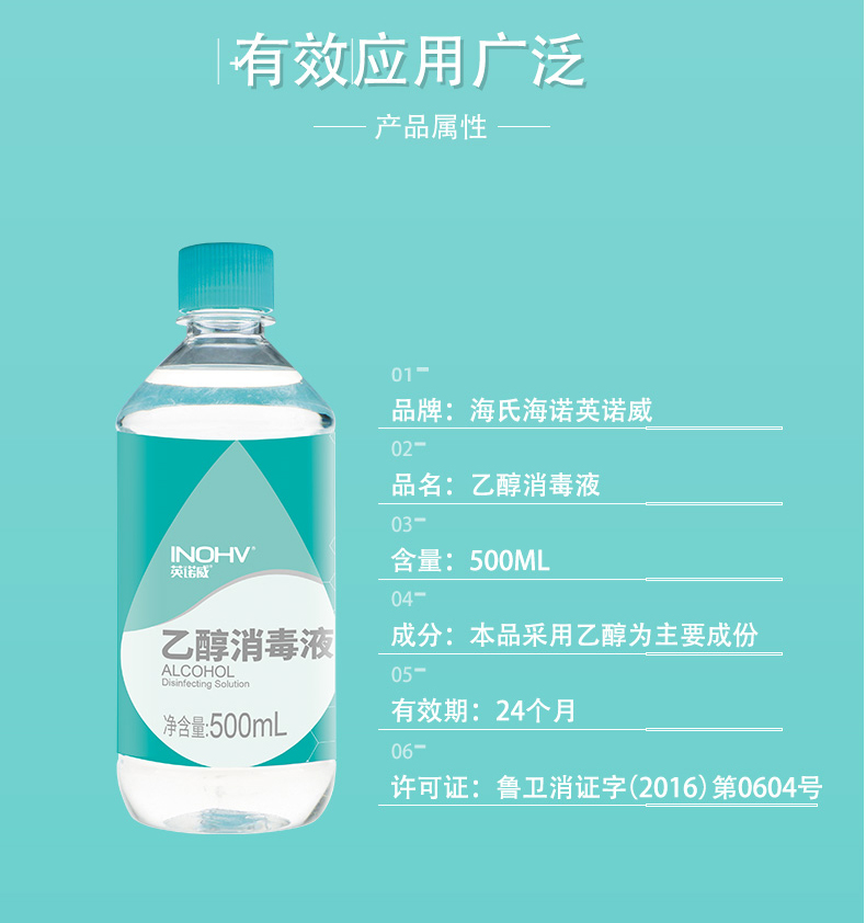 產品名稱:海氏海諾 英諾威 75%乙醇消毒液500ml(簡裝)